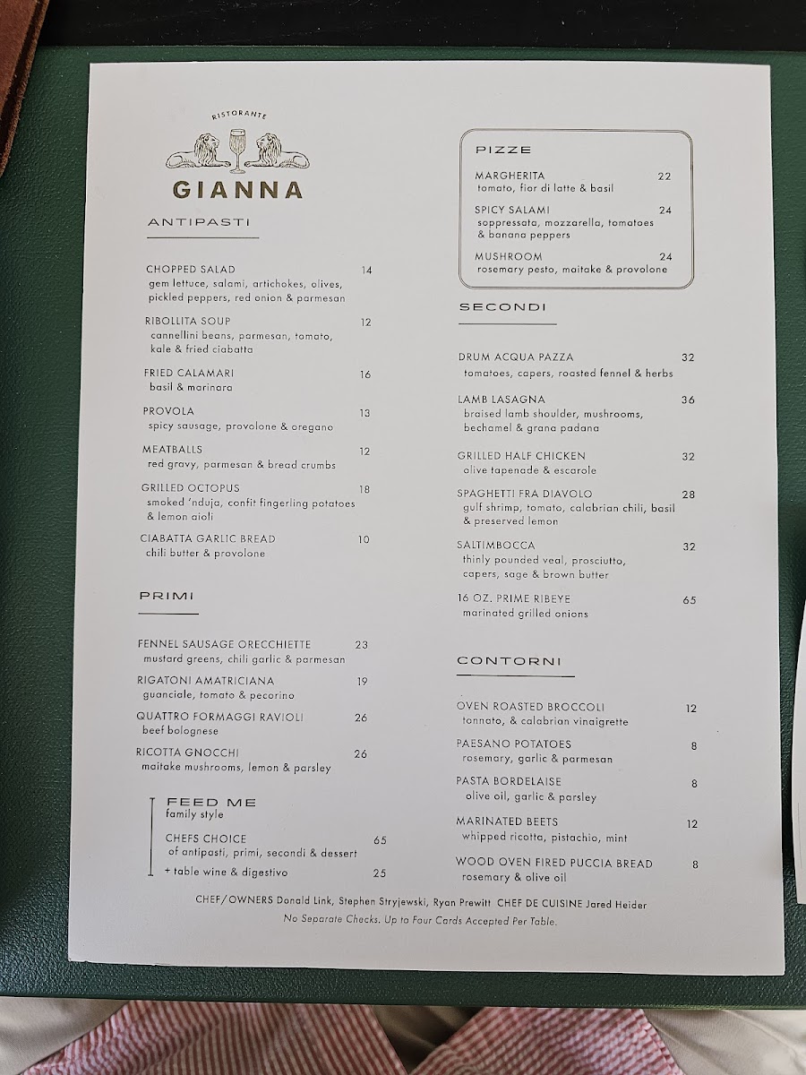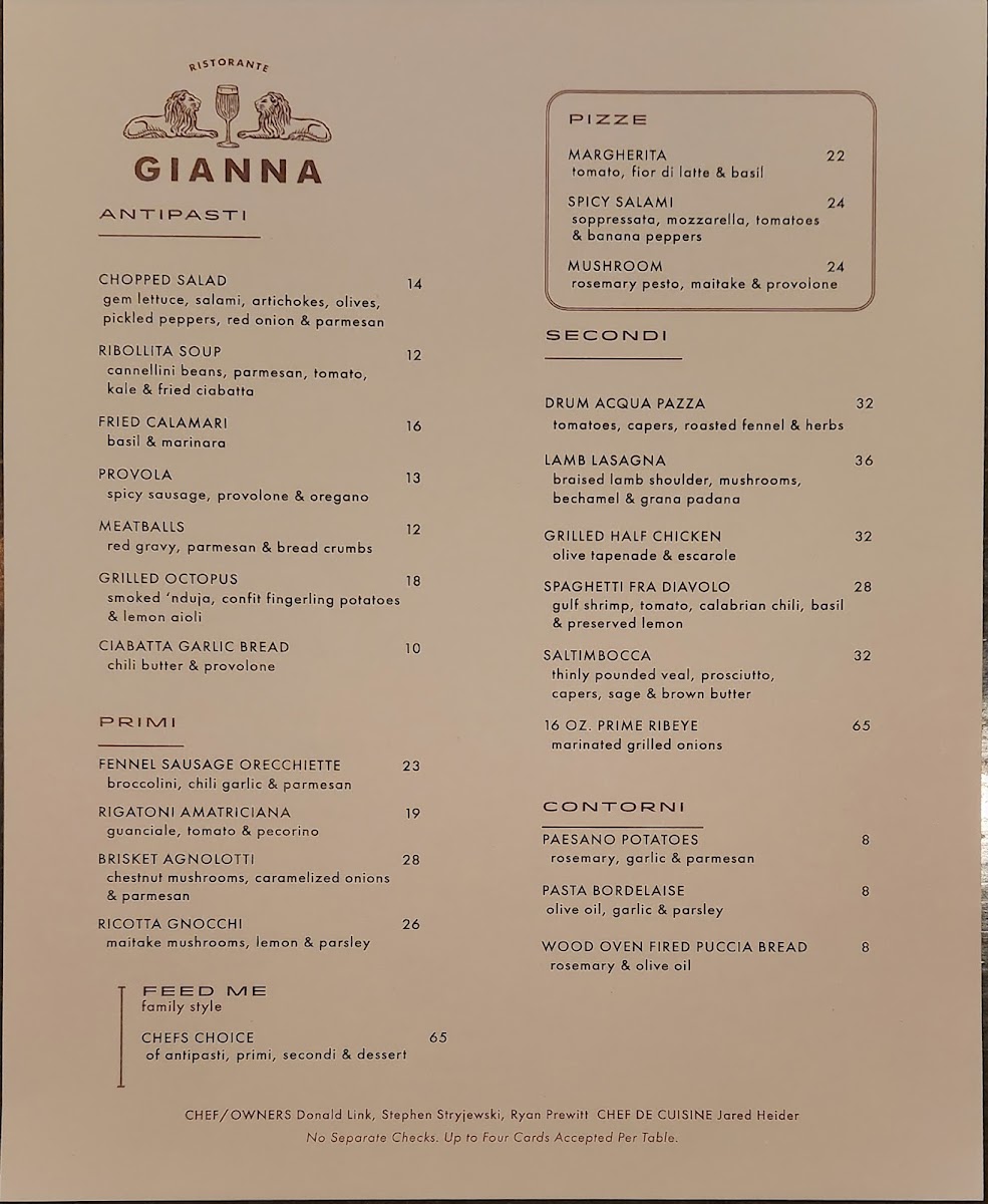 Welcome to Gianna Restaurant, a culinary gem nestled in the heart of New Orleans at 700 Magazine St #101. Known for its authentic Italian flavors, Gianna boasts a menu rich in variety and vibrant taste. The restaurant curates an array of delectable pastas, including the delightful Crawfish Radiatore and mouth-watering Agnolotti. Appetizers like the savory Meatballs and refreshing Kale Salad are perfect starters to your meal.